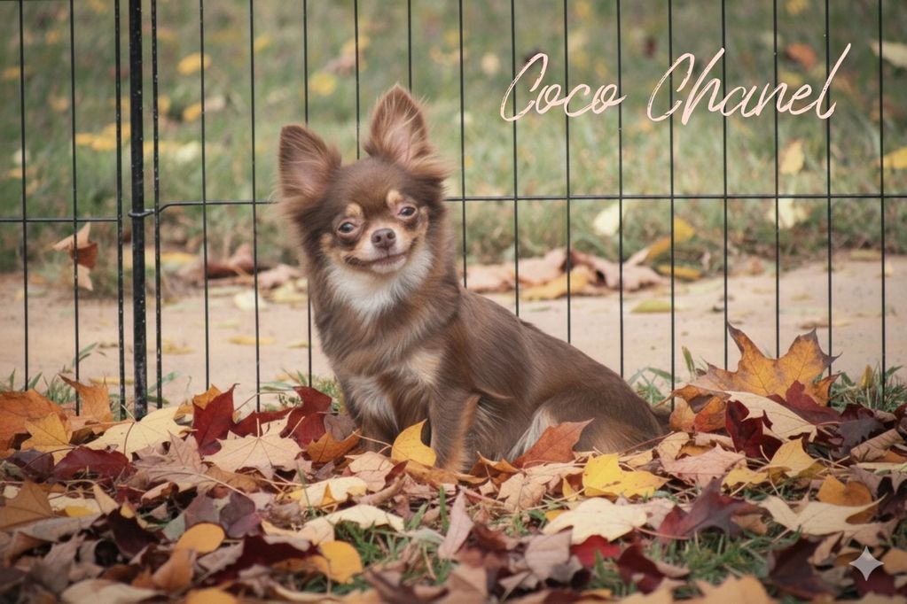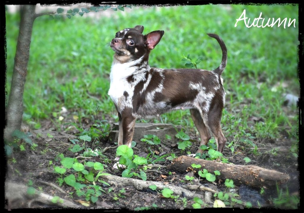 Autumn is our lovely smooth coat chocolate merle girl who is daughter to our Chop Suey and Sookie (now retired). Autumn is registered with CKC and has been genetically health tested with Embark. Autumn weighs 6 pounds.